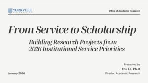 Research is one of the fundamental pillars of Yorkville University’s commitment to academic goals. The Office of Academic Research (OAR) serves as the central hub for administering and advancing research and scholarly activities across our university community.