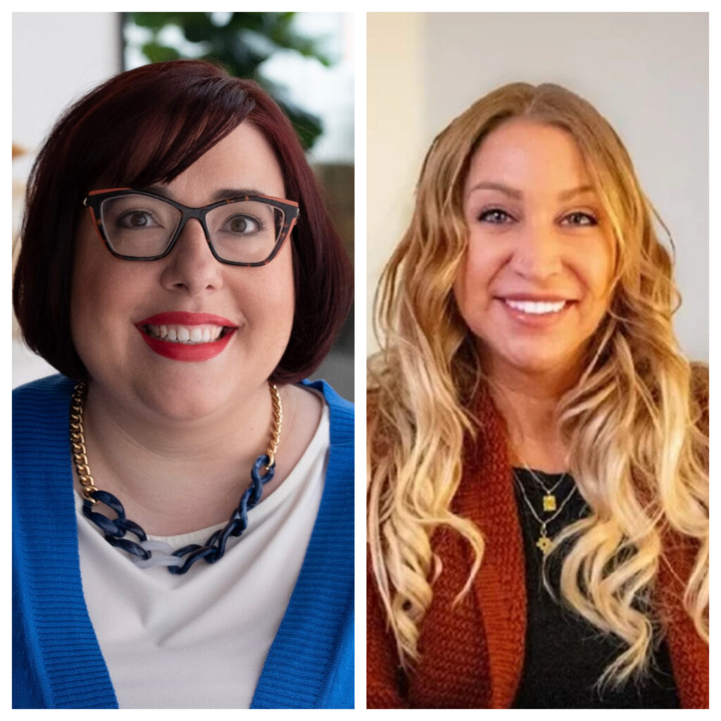 Matthew Dunleavy wearing a pink and purple polka-dot shirt under a grey blazer with red-framed glasses and a long reddish-brown beard smiling into the camera